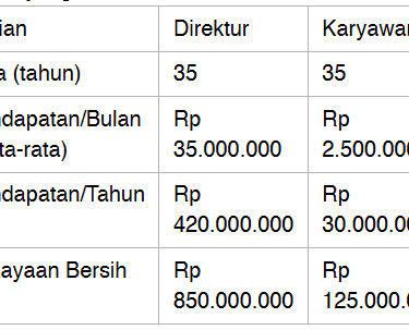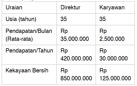 Total kekayaan bersih sang Direktur Rp 850 juta, kekayaan bersih sang Karyawan hanya sebesar Rp 125 juta, namun ternyata sang Karyawan lebih kaya dari sang Direktur, ini disebabkan karena: